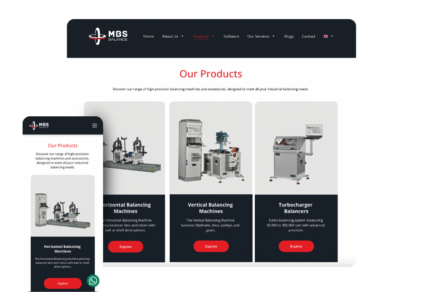 Endüstriyel dengeleme makineleri üreten MBS Balans için SEO uyumlu, mobil cihazlarla uyumlu ve kullanıcı dostu bir web sitesi hazırladım. Hedef; teknik ürünlerin sade ve anlaşılır bir yapıyla sunulması ve kullanıcıların ürünlere kolayca ulaşabilmesiydi.