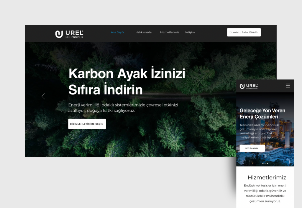 Urel Mühendislik için geliştirilen bu arayüz çalışmasında, enerji verimliliği odaklı hizmetlerini güçlü bir görsel dil ve kullanıcı dostu akışla dijitale taşıdım. 3 haftalık yoğun takvimle fuar öncesi tamamlanan proje, responsive uyumlu ve sade bilgi mimarisiyle hazırlandı.